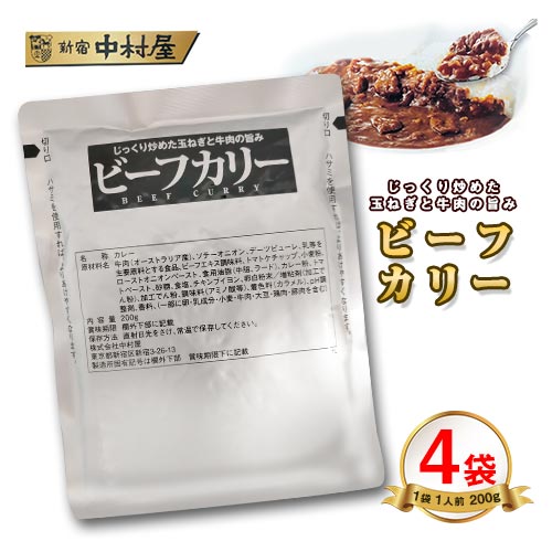 新宿中村屋 ビーフカリー 4袋 ポイント消化 送料無料 お試し バラ売り レトルトカレー