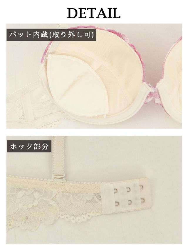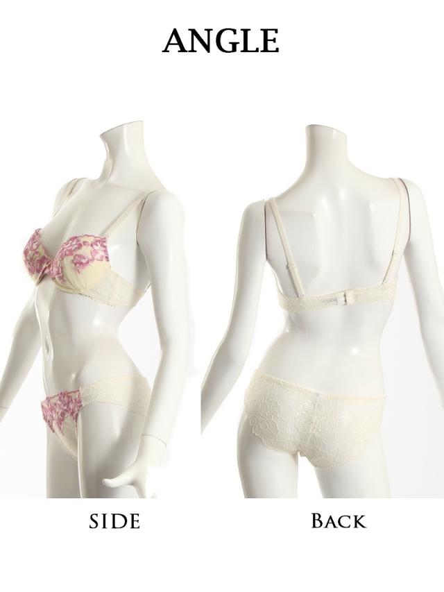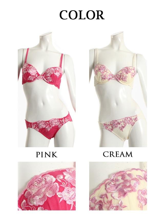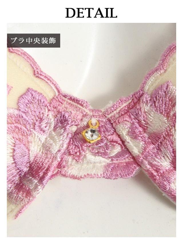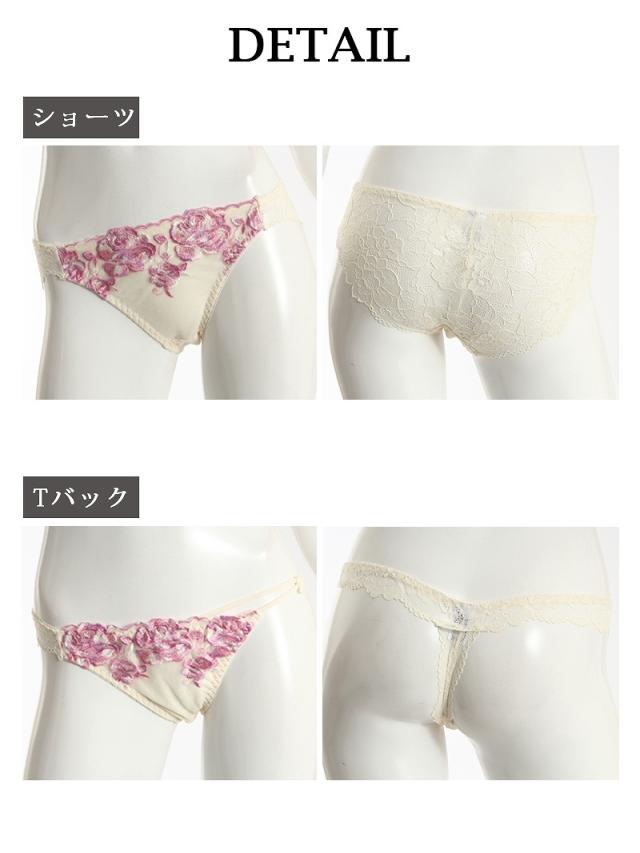 ☆甘めのカラーリングのブラ&ショーツセットは女性らしさ溢れる薔薇の刺繍が施されていてキャバ嬢さん必見♪