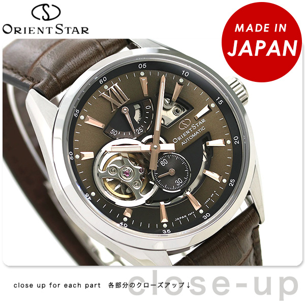 入荷時期未定予約受付中 正規品 7年保証キャンペーン 送料無料 オリエントスター コンテンポラリー モダンスケルトン 41mm オープンハート スモールセコンド 日本製 自動巻き メカニカル メンズ 腕時計 RK-AV0008Y ORIENT STAR CONTEMPORARY MODERN SKELETON アナログ ブラウン×ダークブラウン 革ベルト ◆オリエントスターは、1950年のオリエント創業と同時に輝ける星として生まれた代表的なブランドにふさわしく、歴史に裏付けされた技術と、ディテールにまで配慮した粋なデザインの機械式時計を展開。ベーシックモデルからハイスペックモデルまで多彩なラインナップが魅力です。 モダンスケルトンからパワーリザーブが約50時間以上になったモデルが登場。9時位置にあるテンプ部分は、よりはっきり見えるセミスケルトンに変更。高級感あふれるデザインとスケルトンから覗くムーブメントがワンランク上の腕元を演出。スーツスタイルから、休日の大人カジュアルまで幅広く合わせることができるウォッチです。 発売日:18年10月発売 機械式腕時計 Made in Japan