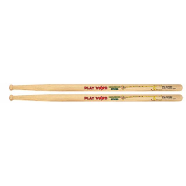 PLAY WOOD PM-S705N マーチング スティックヒッコリー材を使用したマーチングスティックです。扁平チップを採用し、つぶ立ちが良く、細かいストロークに適しています。ヒッコリー材423mm×φ182本1組