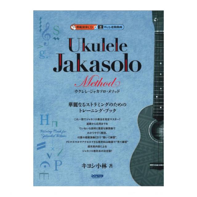 ドレミ楽譜出版社ウクレレ ジャカソロ メソッド 模範演奏CD付【楽譜】今やウクレレを学ぶ人にとってのバイブルとなっている 「ウクレレ・メソッド」 キヨシ小林 著(2007年発行)そのメソッド本の “ジャカソロ版” が満を持して発売! 「ジャカソロとは?」 「ストラミングとは?」 という初歩的な解説から、右手と左手それぞれのフォームを基礎として丁寧にレクチャーしていきます。ジャカソロ奏法に必要なテクニックも写真と図解で徹底フォロー。さらに付属の模範演奏CDで “聴いて練習” 、パソコンやスマホでアクセスできる専用Web連動動画で “見て練習” ができます。教則本の後半では、多数の練習譜例とキヨシ小林さんオリジナルの練習曲を収載。これ一冊で 「ジャカソロ奏法」 を完全マスターできる充実の内容になっています!判型:菊倍ページ数:120編集者:キヨシ小林 著ISBNコード:978-4-285-14799-5JANコード:4514142147999楽器:ウクレレ ジャンル:各種教本