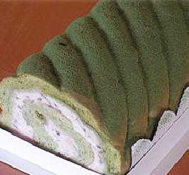ふわふわ抹茶生地に、北海道産小豆と生クリームを巻いたシンプルなロールケーキですが