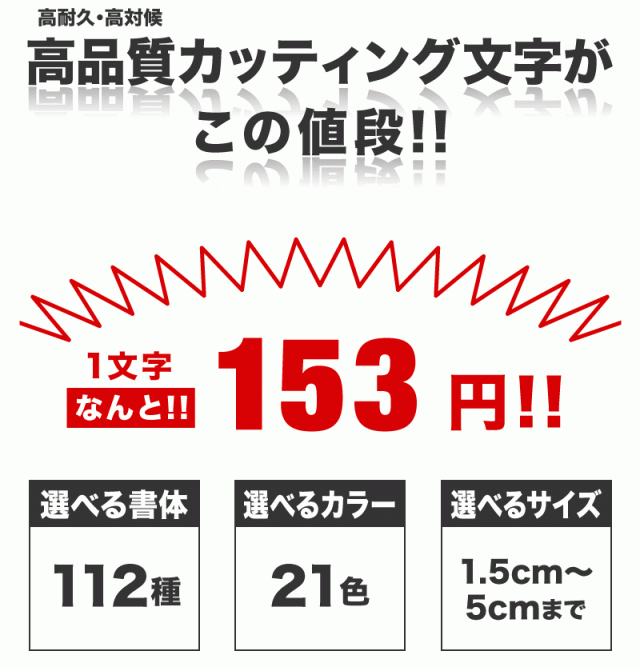 1文字からOK!5cmまで同価格!(1.5〜5cm)屋内向け 文字シール ステッカー 車 オーダーメイド 看板 カッティングステッカー [◆]