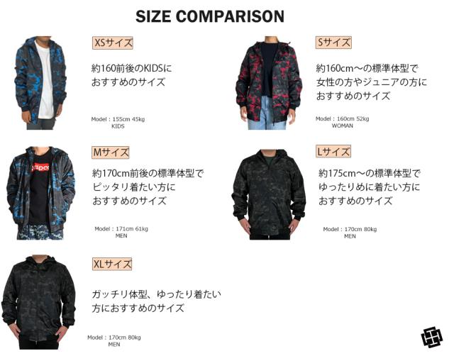 | 派手すぎない迷彩柄がオシャレなウインドブレーカー ポリエステル100%の生地とリブ仕様の裾と袖で防風性能抜群! さらに、かる〜い着心地でちょっとしたお出掛けから アクティブにも!用途多彩でご使用いただけます。 3つのカラーと6つのサイズで幅広い世代でお使いいただけます! |