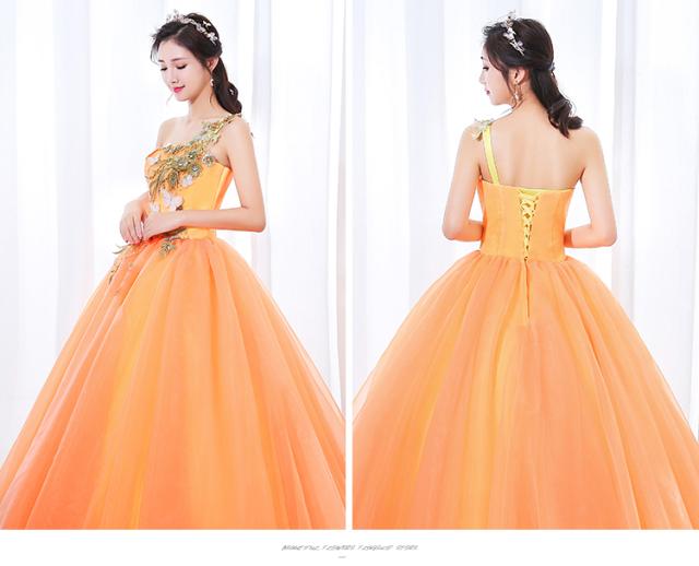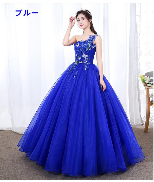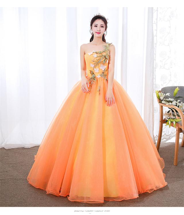 大特価 カラードレス ロングドレス パーティドレス ワンピ オレンジ ブルー 結婚式 発表会 演奏会 オーダーサイズ可 パニエ付 D064
