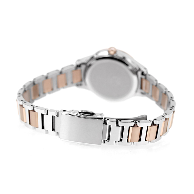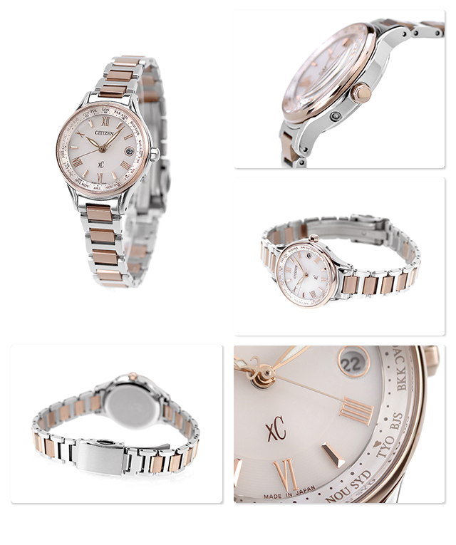 正規品 7年保証キャンペーン 送料無料 シチズン クロスシー エコ・ドライブ電波時計 ティタニアライン ハッピーフライト サクラピンクツートン* 電波ソーラー レディース 腕時計 EC1165-51W CITIZEN xC TITANIA LINE HAPPY FLIGHT アナログ シルバー×サクラピンク* チタン エターナルプラチナ◆クロスシーは北川景子さんがイメージキャラクターのブランドです。「Bloom」をテーマにデザイン。ありのままで前を向いて歩いていけば、きっと自分らしい花が咲く。そんな想いを込めました。サクラピンク*とプラチナ配合のツートーンカラー、華奢で繊細なケースラインにすっきりエレガントなワイドオープンの文字盤にやさしい印象のオリジナルフォントを採用。都市表記には、持ち主の願いが花ひらくようにと想いを込め「BLOOM」の隠し文字。4時と5時の間(TYO)には桜の花びらをあしらっています。ベーシックなデザインの中にも女性らしい繊細さが宿った腕時計です。 *サクラピンク、Sakura pinkは、シチズン時計株式会社の商標です。 発売日:2018年10月発売