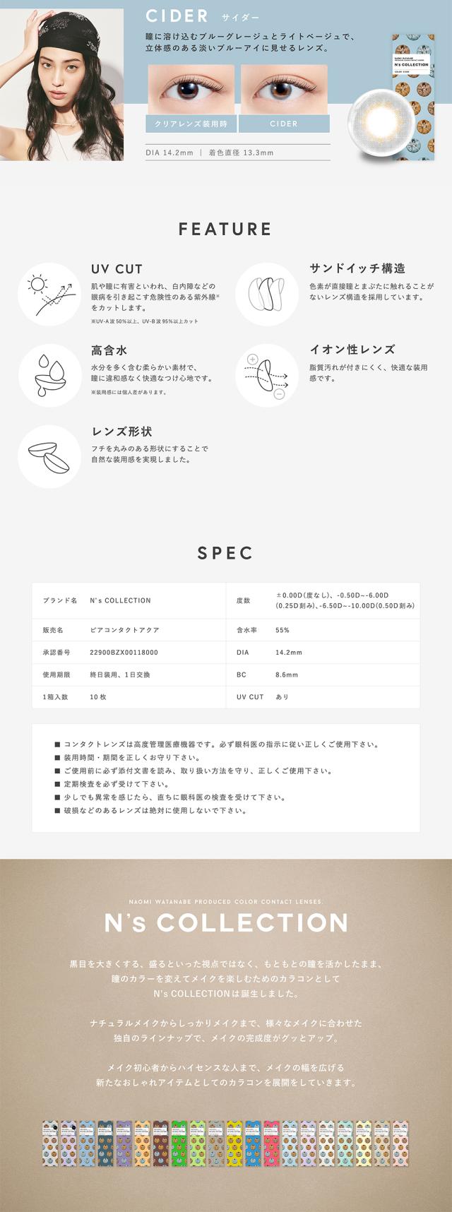 カラコン ワンデー 度あり度なし エヌズコレクション Ns COLLECTION 1箱10枚 渡辺直美 14.2mm カラーコンタクトレンズ 送料無料