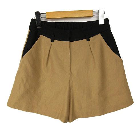 【中古】ストロベリーフィールズ STRAWBERRY-FIELDS ショートパンツ ウール キャメル 黒 2 レディース