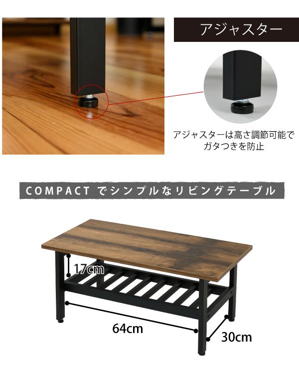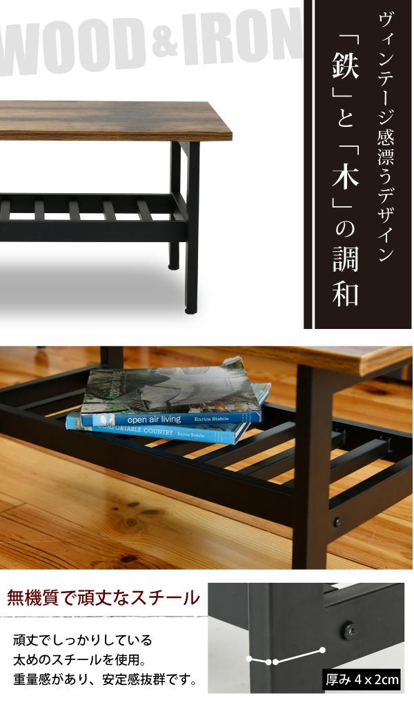 インダストリアル センターテーブル 幅80 奥行40 高さ36 リビングテーブル 棚 付き テーブル ローテーブル 収納 付き 西海岸