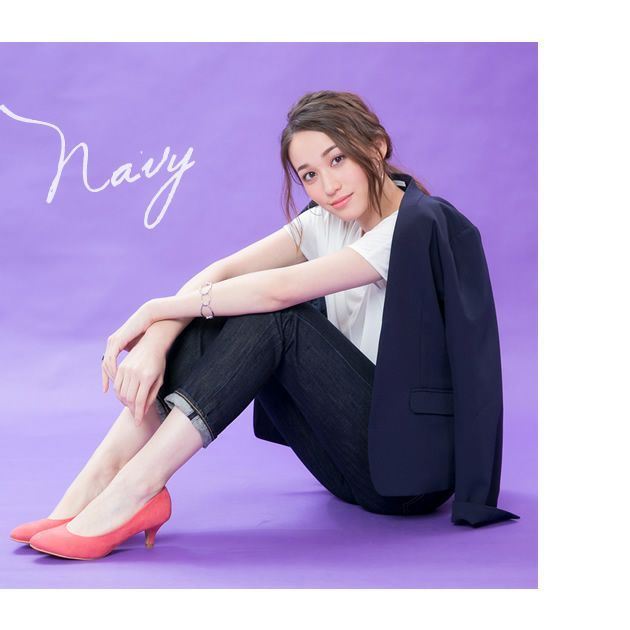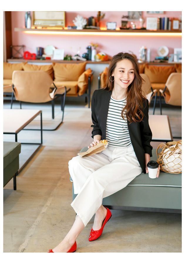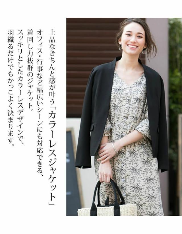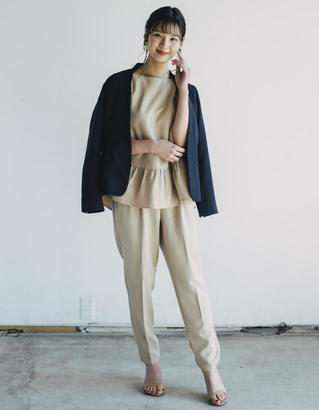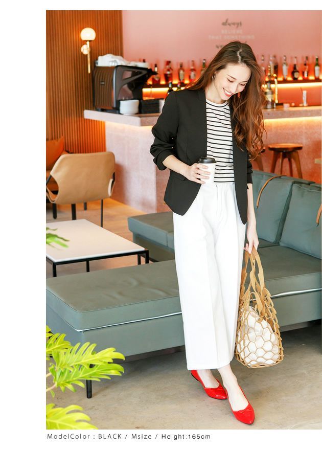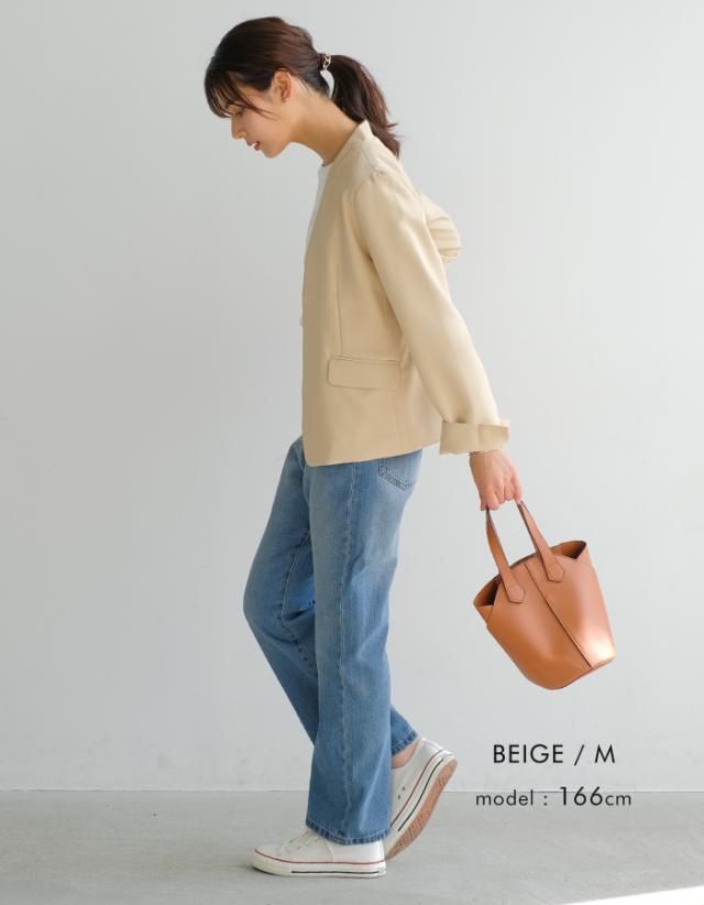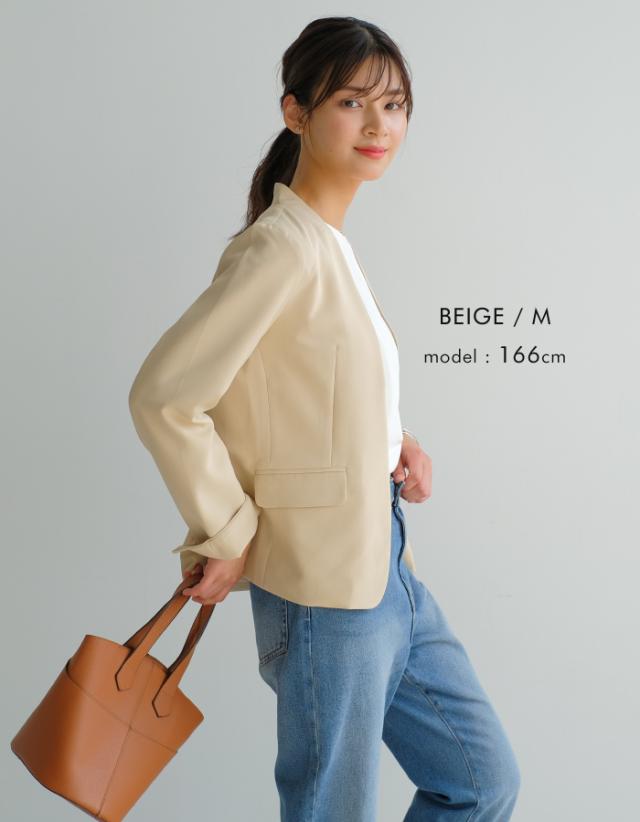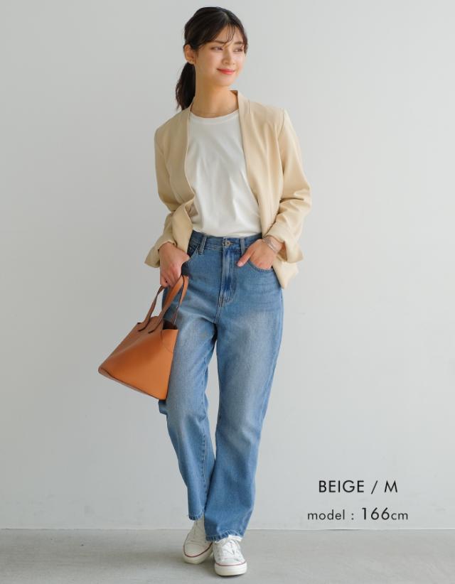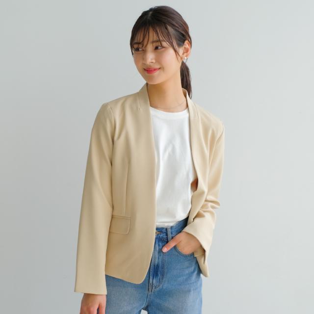 すっきりとしたカラーレスのテーラードジャケットは着回し力抜群。