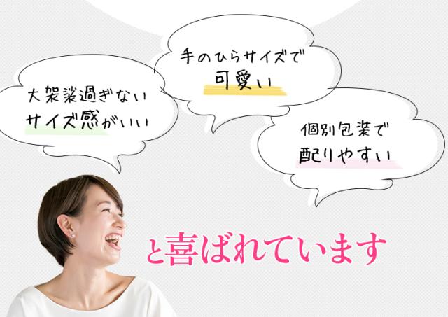 - 退職する時に配りました 丁寧にメッセージシールが貼ってあり助かりました また機会があればここでプチギフト買いたいと思います