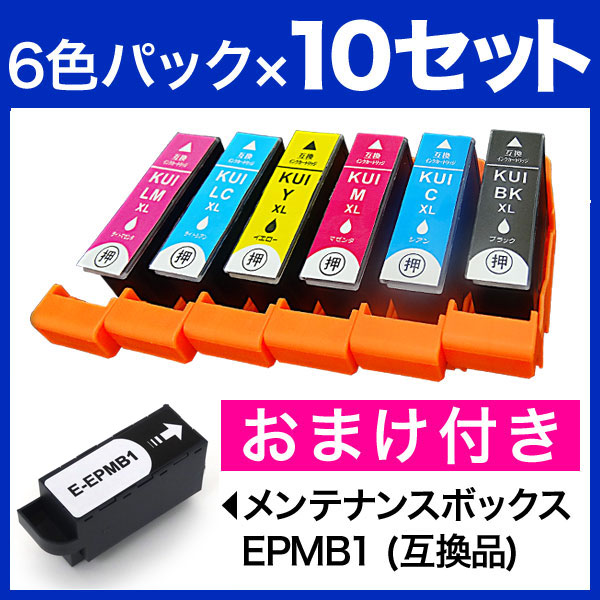 KUI-6CL-L エプソン用 KUI クマノミ 互換インク 増量 6色×10+メンテナンスボックス【送料無料】 増量6色×10セット+EPMB1