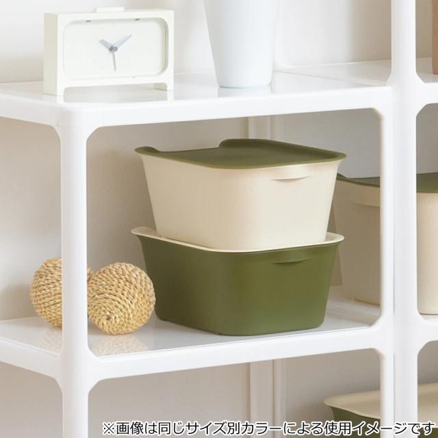 フタをすることで、中身をホコリから守り、積み重ねにも便利です。フタに少しくぼみがあるので、積み重ねたときにズレにくく安定感があります。フタの上に小物のちょい置きもできて便利です。