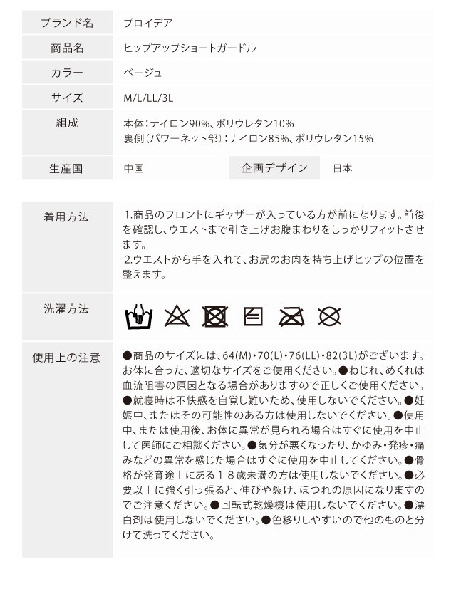 【商品名】プロイデア ヒップアップ ショートガードル
