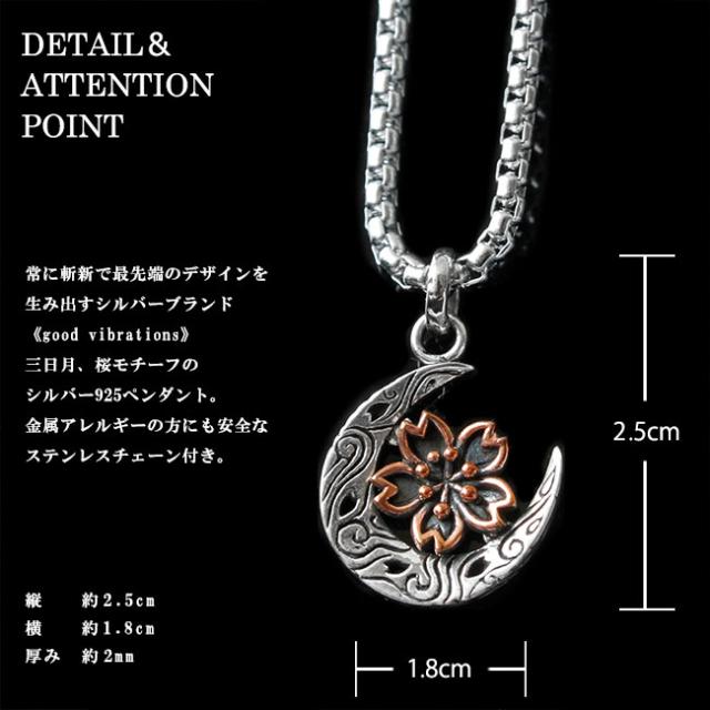 good vibrations グッドバイブレーション シルバーペンダント メンズ レディース シルバー925 和柄 桜 三日月 チェーン付き シルバー 【ギフト】 pe282