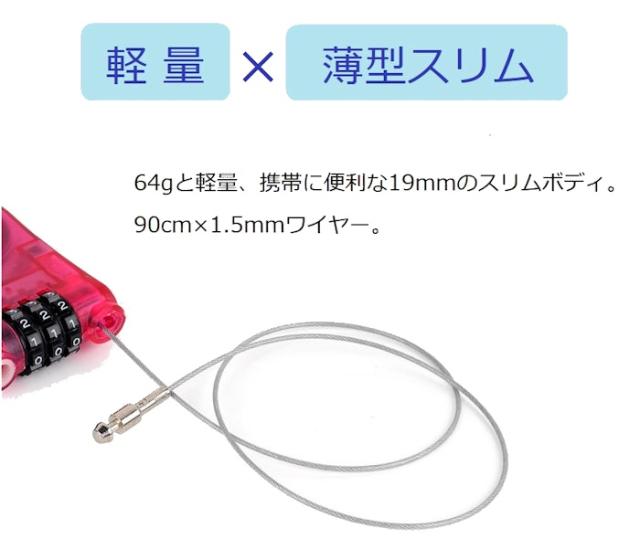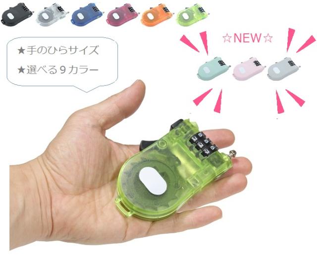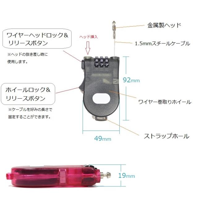 取扱説明書・安心の3カ月保証付 希望の番号へ簡単設定 手のひらサイズで携帯に便利な簡易ワイヤーロック 巻き取り式ワイヤー 選べる9カラー
