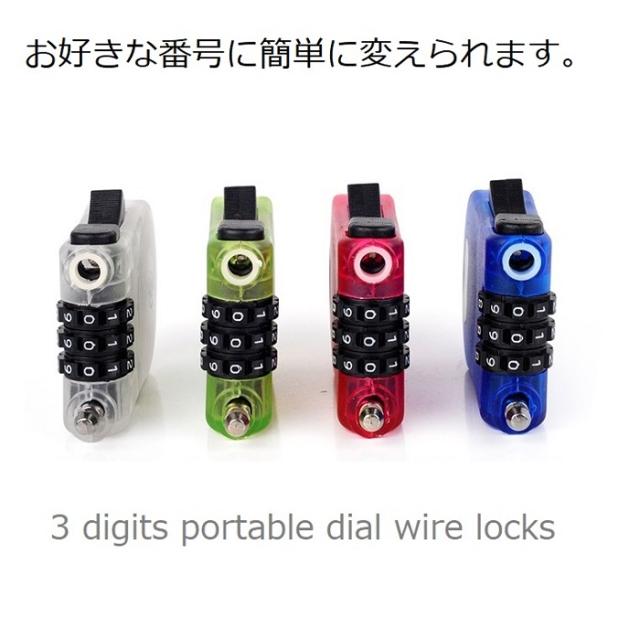 ポータブルワイヤーロック スリム軽量コンパクト 3桁ダイヤル式 番号変更可能 スノーボード 自転車 自転車の鍵 ワイヤーロック コンパクト ポータブル ロードバイク クロスバイク キャンプ 旅行 スノボ サドル ワイヤー錠 スキー スーツケース 防犯 アウトドア