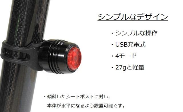 ◆シンプルな操作とデザイン、コンパクト・軽量なUSB充電式のテールライト。