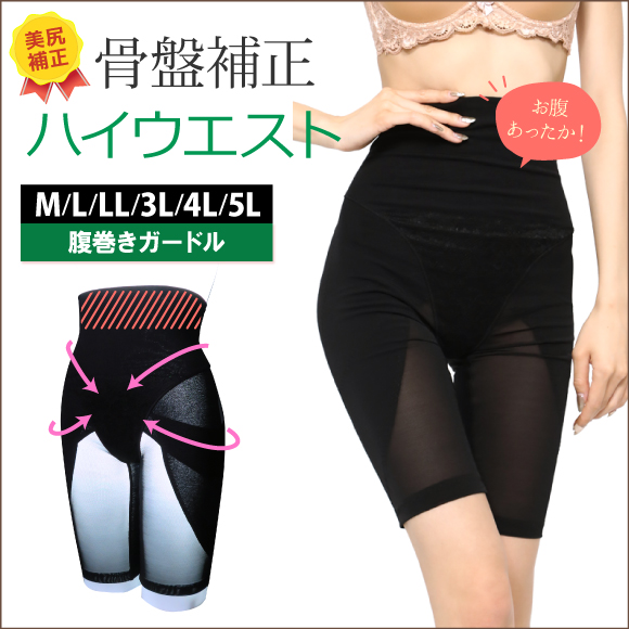 骨盤 補正 ロング ガードル M-5L ハイウエスト 腹巻き ヒップアップ パワーネット 綿混(PN-03)