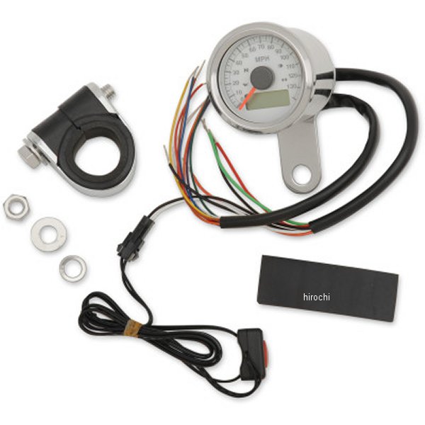 DRAG スピードメーター エレクトリック(MPH表示) 1-7/8インチ インジケーター付き ステンレス/白 2210-0417 WO店