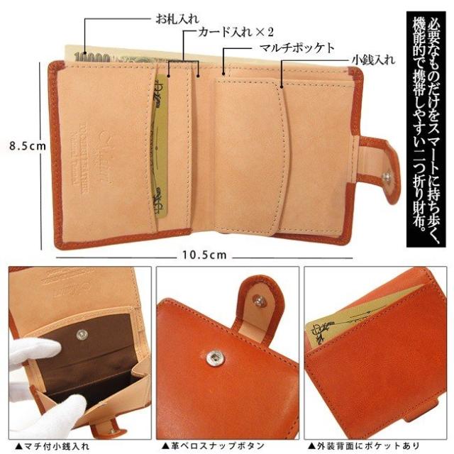 栃木レザー 二つ折り財布 メンズ Maturi 牛革 コンパクト ミニウォレット MR-077