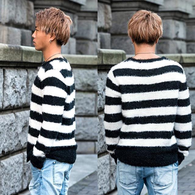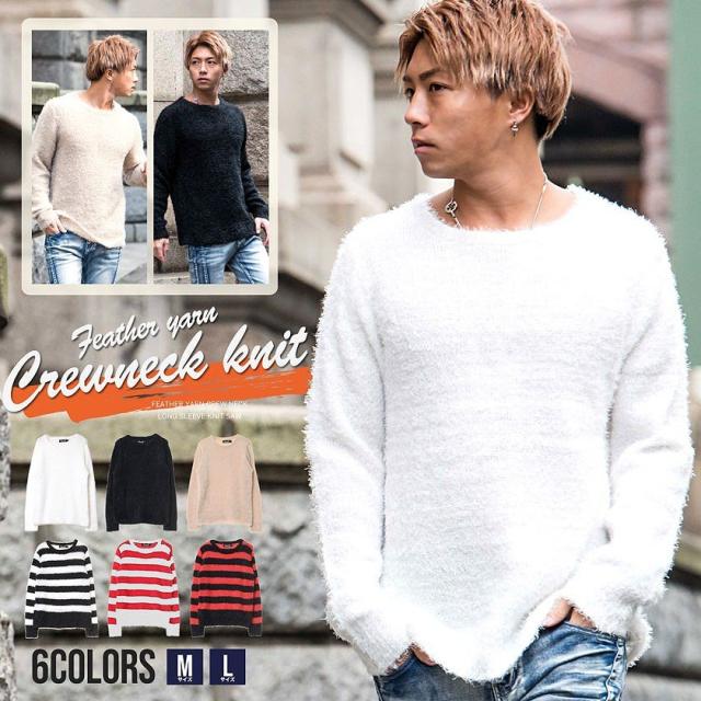 ニット メンズ セーター フェザーヤーン ブランド クルーネック 長袖 ニットソー 無地 ボーダー トップス ストリート ストリート系 ストリートファッション 韓国 韓国系 韓国ファッション 下北沢 下北系 古着 古着系 ファッション ブラック オフホワイト ベージュ 黒 白 M L 秋 冬 CavariA キャバリア ユニセックス 部屋着 ルームウェア 男性 男 父の日 父の日ギフト 父の日プレゼント 20代 30代 40代 メンズファッション 東京 プレゼント 誕生日 記念日 贈り物 ギフト配送について