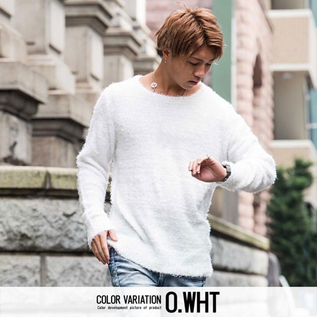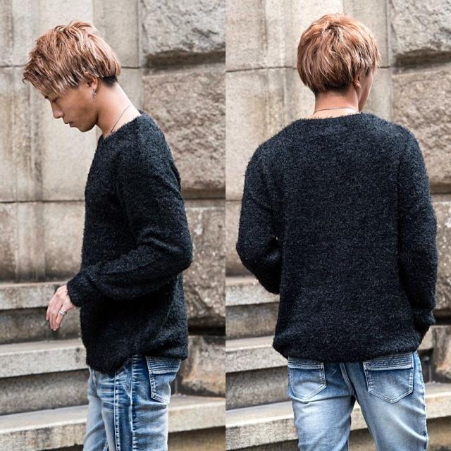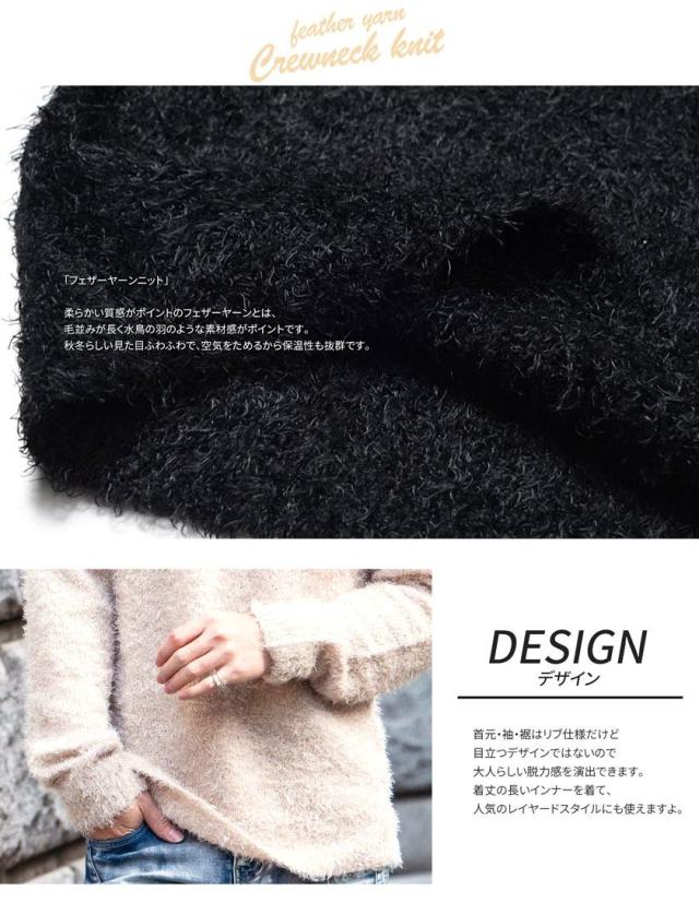 毛足が長く滑らかな肌触りのフェザーヤーンを使用したニット。
