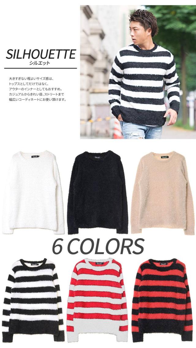 ニット メンズ セーター フェザーヤーン ブランド おしゃれ クルーネック 長袖 ニットソー シンプル 無地 ボーダー トップス 暖かい あったか ユニセックス ブラック オフホワイト ベージュ 黒 白 M L 秋 冬 秋冬 CavariA 20代 30代 40代 即日発送 [CASC16-18]