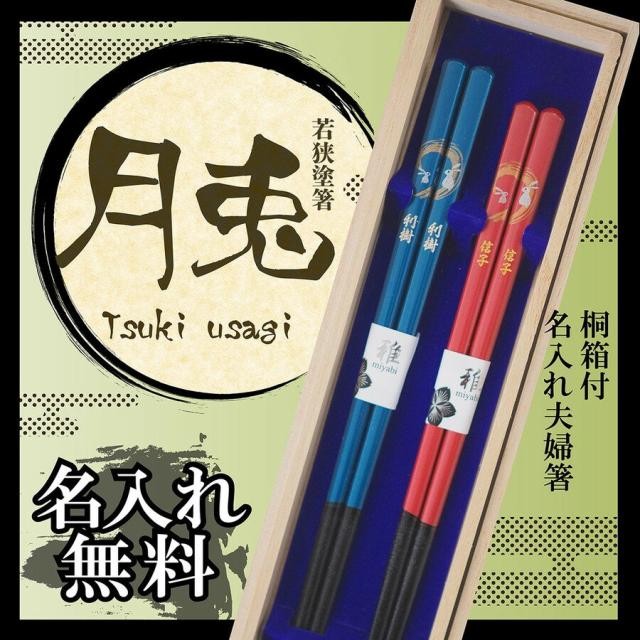 名入れ 夫婦箸 若狭塗箸 月兎 ペア セット 結婚祝い クリスマス 誕生日 敬老の日
