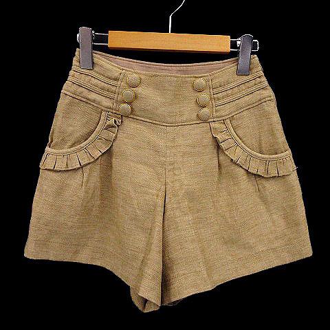 【中古】アプワイザーリッシェ Apuweiser-riche ショートパンツ リネン混 フリル ボタン 総裏地 日本製 ベージュ 0 レディース