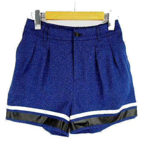 【中古】ジーナシス JEANASIS ショートパンツ 総裏地 リネン調 青 白 黒 F レディース