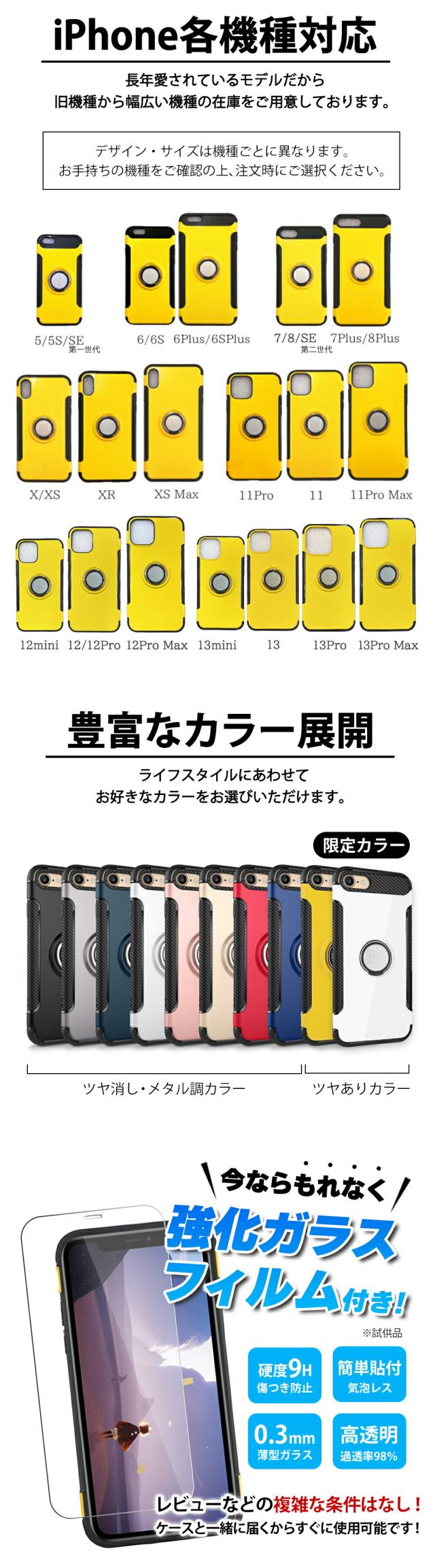 iPhone ケース リング付き 衝撃吸収タフケース 保護 ガラスフィルム 背面 スマホリング ストラップホール iPhone14 ケース iPhone13 ケース iPhone12 ケース iPhone11 ケース mini Pro Max iphone x ケース iPhone7Plus ケース 8Plus ケース XS SE 6S 6Plus ケース