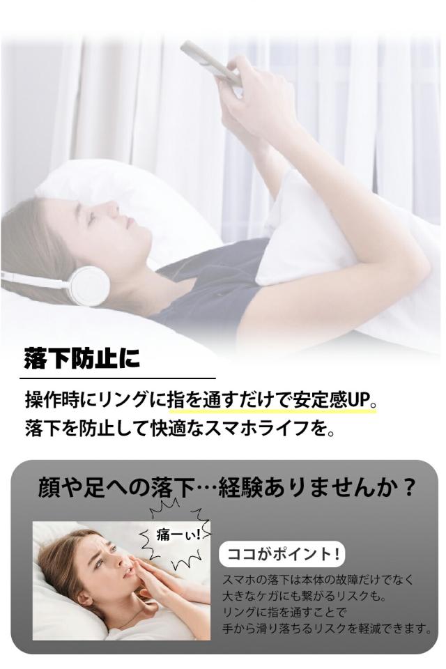 リングに指を通すことで手に収まりきらない大きなサイズのiPhoneも安定して持つことが出来ます。