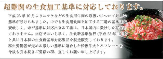 今では簡単に食することが出来ない生の牛肉で、2011年10月より施行された、新・生食規格基準に対応した日本第一号となる正真正銘生食牛肉です。