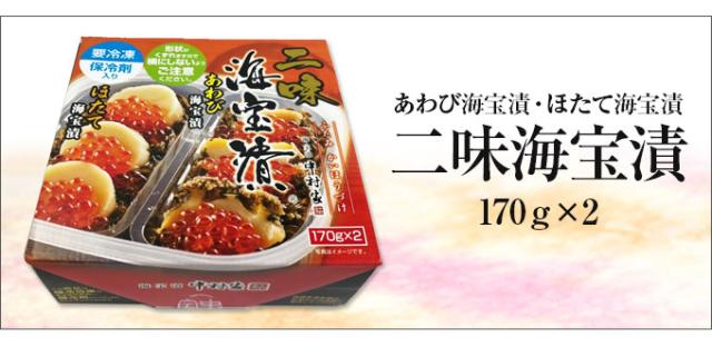 ○内容量:あわび海宝漬170g×1、ほたて海宝漬170g×1
