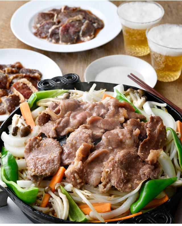 ○原材料名:【ロースジンギスカン】羊肉(オーストラリア産)、たれ(醤油、たまねぎ、にんにく、しょうが、りんご、オレンジ、砂糖、食塩、香辛料)、調味料(アミノ酸)、カラメル色素、(原材料の一部に小麦を含む)