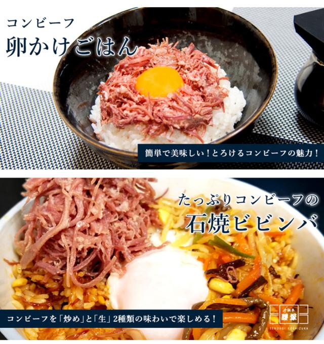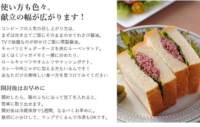 【コンビーフ】牛肉(オーストラリア産、メキシコ産)、牛脂(国産)、食塩、砂糖/調味料(アミノ酸)、発色剤(硝酸K、亜硝酸Na)、酸化防止剤(V.C)、(一部に牛肉を含む)