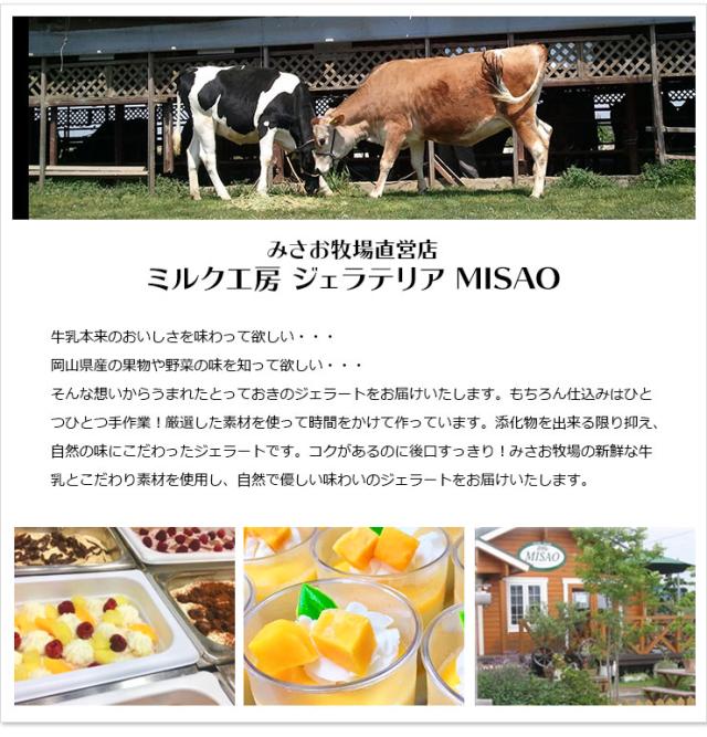 ○製造者:【「みさお牧場」ジェラテリアMISAO】岡山県岡山市南区北七区628