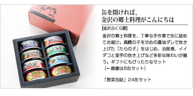 惣菜缶詰(24缶セット) 金沢ふくら屋 ご飯のお供 秘密のケンミンショー、シューイチ、他メディアで絶賛のたらの子缶詰入り!送料無料 御歳暮ギフト