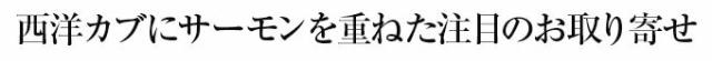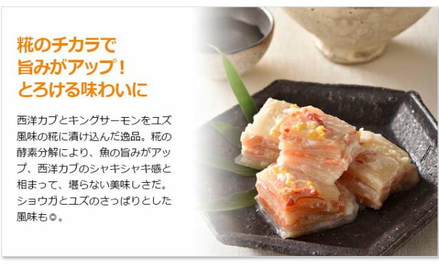 ○原材料名:コールラビ(キャベツかぶ)、キングサーモン、パプリカ、生姜、漬け材料(米こうじ、米、食塩、ゆず)