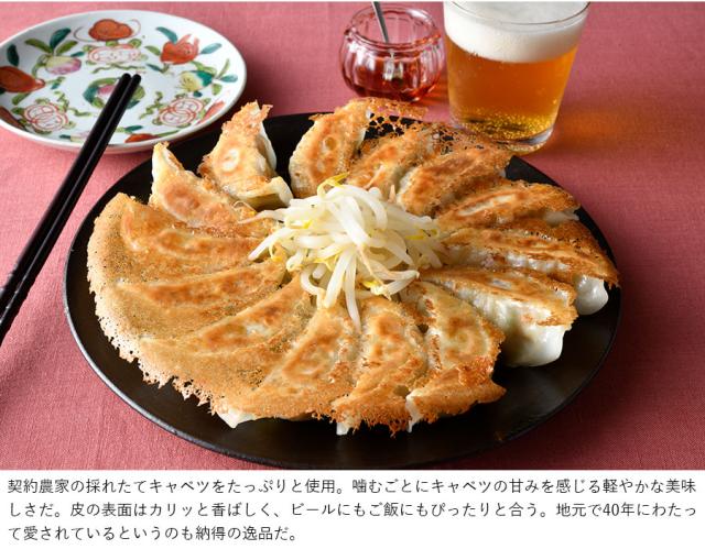 浜松で55年。地元民に愛される餃子はジューシーながらあっさり。秘密は農家の採れたてキャベツを粗刻みして餡にふんだんに使っているから。その甘みと食感が、国産豚肉の旨み、にらやねぎとともに口中で躍り、タレなしで旨い。パリッと仕上がる皮との一体感も◎。