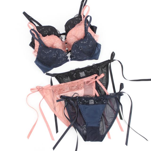 フロントホック ブラジャー ショーツ セット 大きいサイズ セクシーランジェリー 《フロントホックレースベールブラ&ショーツ》 上下セット 前ホック ネイビー ブラック ピンク フロントホックブラセット 前ホックブラ【ツーハッチ】