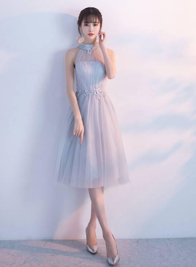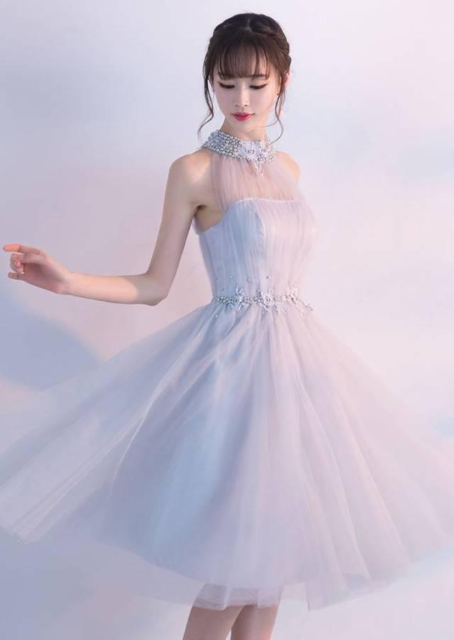 グレー レースアップ チュチュドレス シフォン 編み込み 綺麗 おしゃれ 可愛い 上品 清楚 デート 結婚式 二次会 お呼ばれ 女子会 記念日