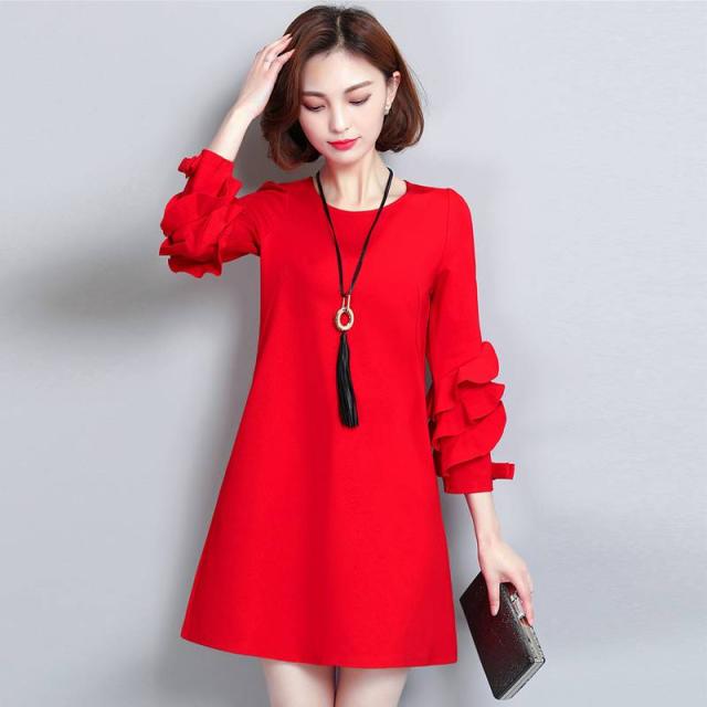 無地 ワンピース ミニ丈 エレガント フリルスリーブ デザインスリーブ 大人レディ シンプル レディース トレンド 2018年新作 定番 人気