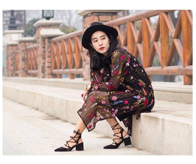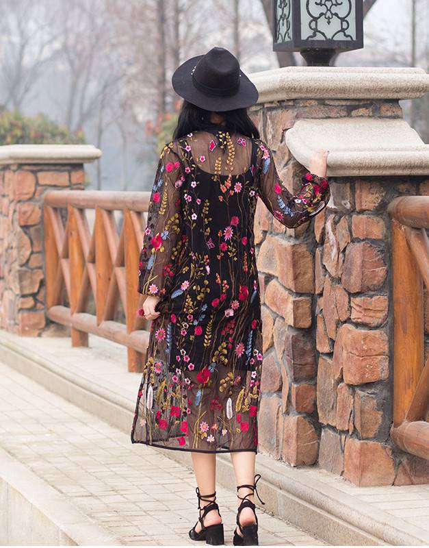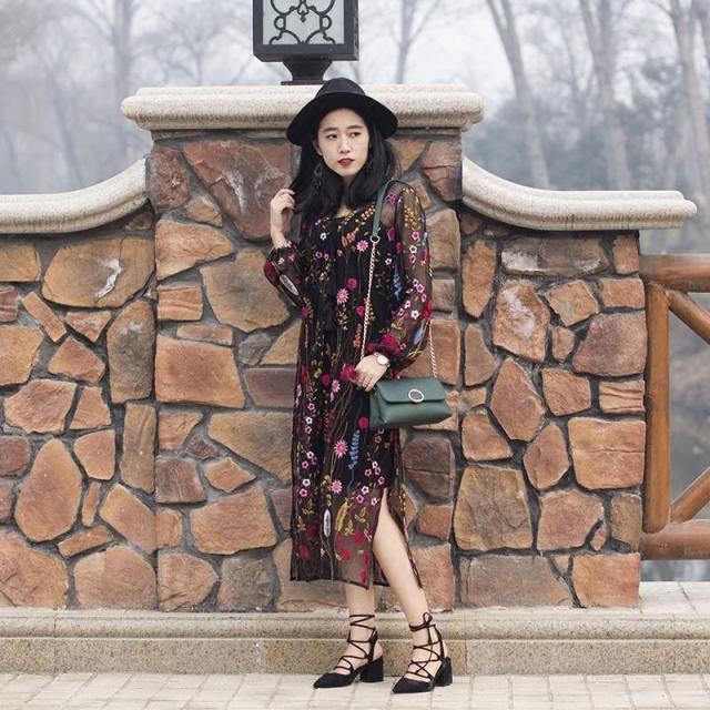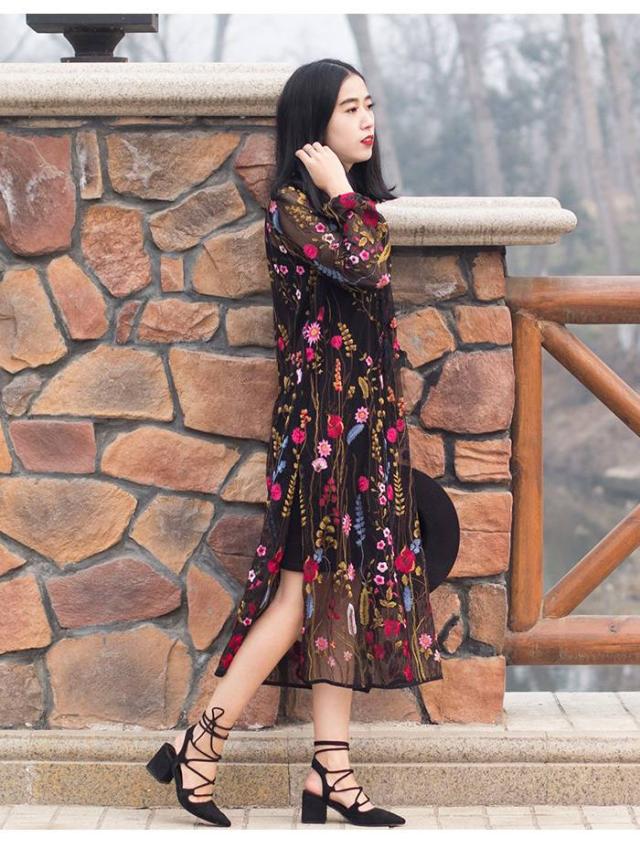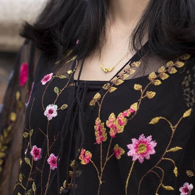 ブラックをベースにした花柄の刺繍でエレガントなスタイルを実現。