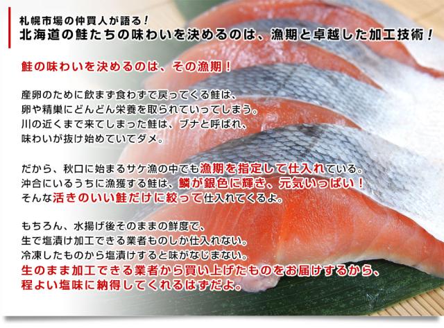 北海道産の鮮度の良い鮭を しっかりと塩で締め、味わい豊かに仕立てた逸品です。北海道の味覚を堪能してください。程よい塩加減と秋鮭のうまみ!!これが北海道の新巻きサケです。