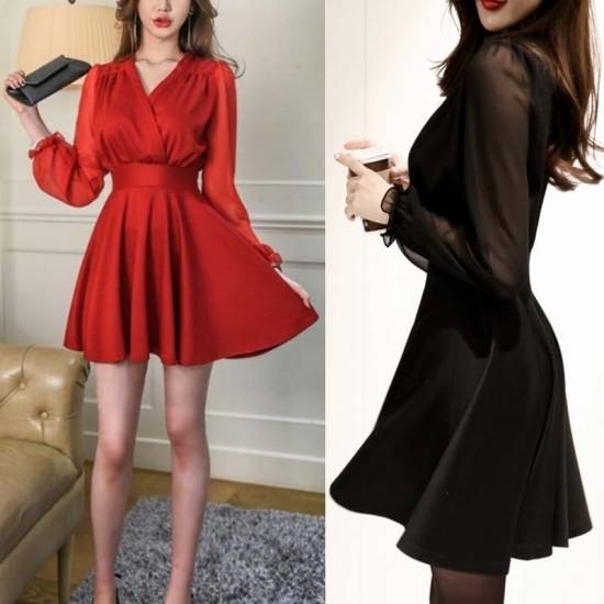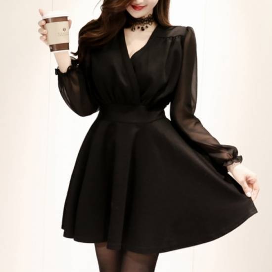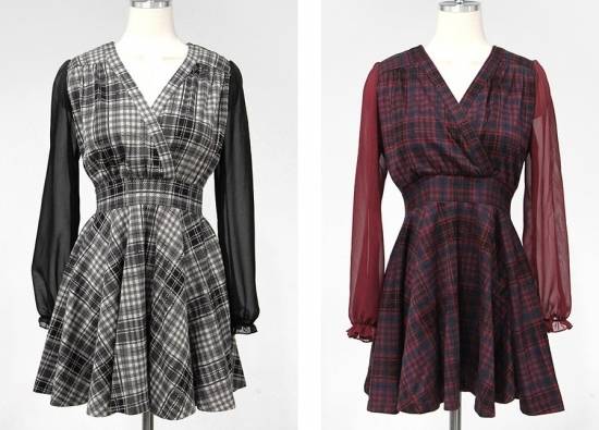 ワンピース ミニ丈 レディース シフォン シースルー フレア チェック柄 上品 エレガント パーティー デート 結婚式二次会 お呼ばれ