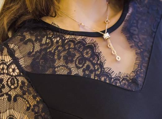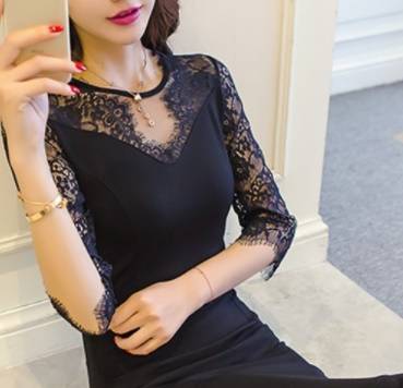 胸元から腕、裾部分はレース素材で肌見せセクシー♪