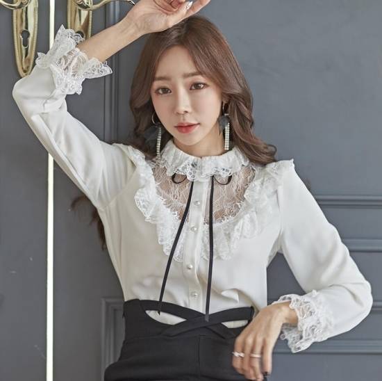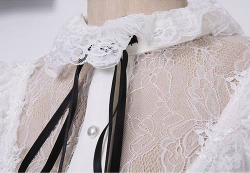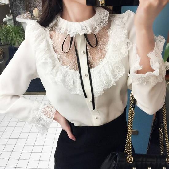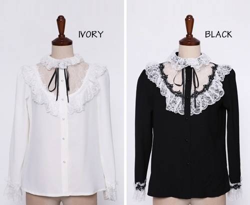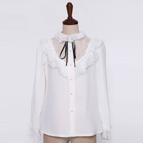 トップス シャツ ブラウス レディース レース フリル モノトーン リボン パールボタン フォーマル 上品 デート 結婚式二次会 お呼ばれ
