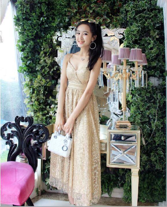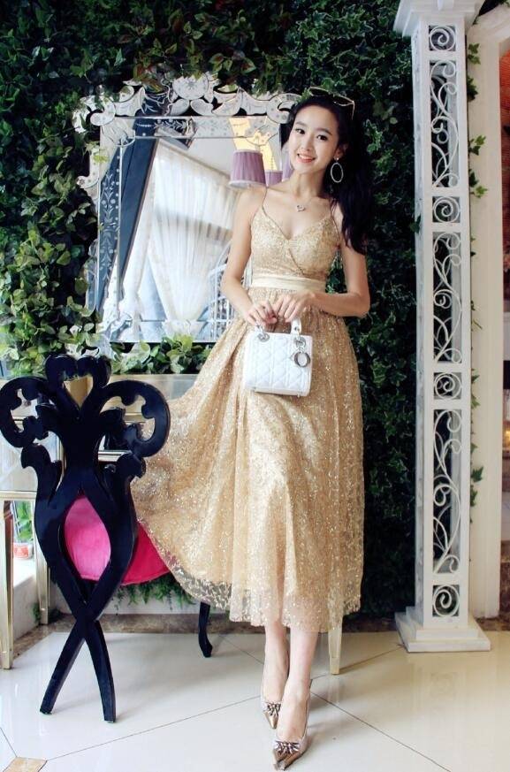 メタリックカラー ワンカラー エレガント ゴージャス 華やか キャミワンピース ハイエウエスト ミディ丈 レディース 2018年新作 定番